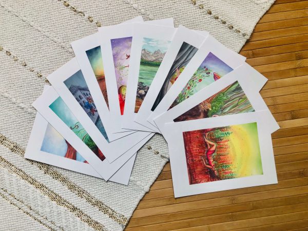 Ti manderemo 10 stampe scelte casualmente (scorri per vedere quali immagini possono capitarti – NB non abbiamo ancora aggiunto le illustrazioni tratte dal mazzo il viaggio della maternità!)